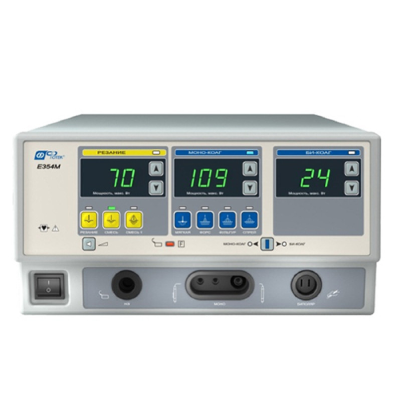 Аппарат электрохирургический высокочастотный ЭХВЧ-350-03-ФОТЕК (Е354МВ). Области применения: гинекология и вагинальная хирургия, общая хирургия, гибкая эндоскопия, эндоскопическая хирургия, торакальная хирургия, дерматокосметология, пластическая хирургия, оториноларингология.